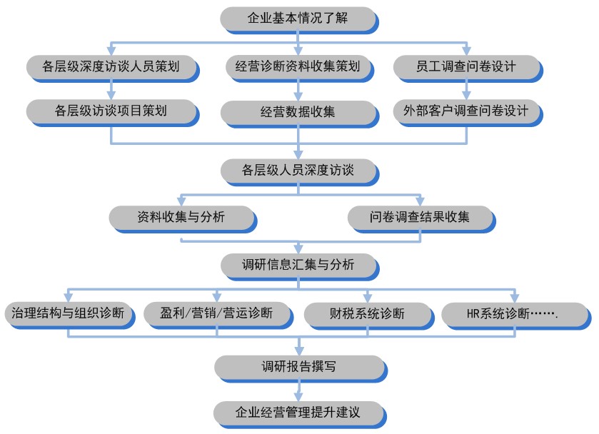 伍略星空体育平台官方网站顾问将利用多年企业诊断经验构建起了针对不同行业不同规模企业的从经营管理各维度进行全面经营诊断的模型,通过对各层级的深度访谈、对外部客户内部员工的问卷调查、对企业当前的经营管理系统和经营数据实施分析,综合的进行企业经营诊断结果判断,拟出企业现阶段存在的主要问题以及问题产生的原因,并通过星空体育平台官方网站顾问专业角度和企业发展方向来提出实操性的解决对策。