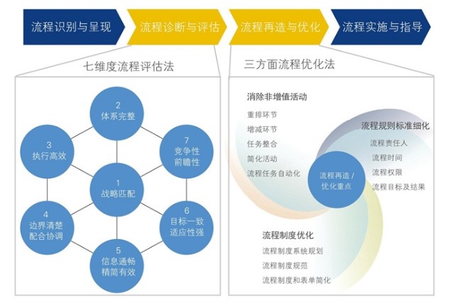 伍略星空体育平台官方网站的企业运作流程优化,是以“过程方法论”为基础,对企业现有运作流程实施诊断,判断企业现有流程运作的成熟度和价值贡献,重新识别出企业的关键流程、支撑性流程、管理流程,对流程现状图、关键点分析、流程合理化分析、“未来”参数、“未来”流程图、 关键点制度制约和奖惩细化等实施流程再造或优化,并与当前的企业能力进行适时匹配。