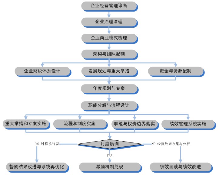 所谓中小型企业经营管控星空体育平台官方网站,即由伍略星空体育平台官方网站经营管理专家对中小型企业实施治理结构、商业模式、盈利模式、盈利能力、营运流程、财务体系、人力资源体系等全面经营诊断后,将系统的为中小型企业构建“战略驱动型经营管理体系”,主要包括:企业治理结构清理、企业发展规划与商业模式梳理、组织体系设计、营运流程设计、财税管理系统优化、绩效与薪酬福利系统设计等。