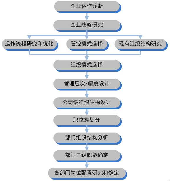 伍略星空体育平台官方网站从企业的战略梳理入手,深刻理解客户业务价值链、组织结构设置现状,结合业内先进企业的最佳实践范例和企业需求,通过传统的组织设计方法和基于流程的组织设计方法,对组织结构问题进行诊断,并对组织结构进行优化。