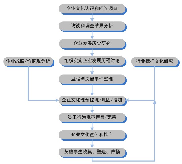 企业文化体系搭建适合于有一定发展历史周期的企业,企业内部已经形成一些约定俗成的礼仪或规范,且企业具有一定的共同价值取向和核心价值观念。